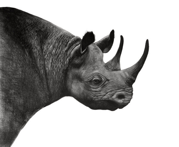 Black Rhino is an Open Edition Fine Art Print of the original charcoal drawing and part of the Wildlife of Africa Collection.