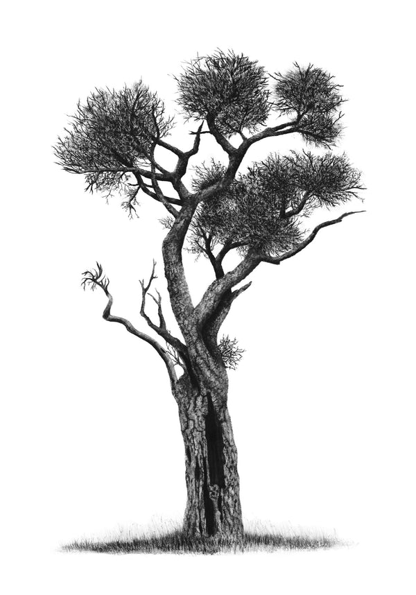This is an Open Edition Fine Art Print of the original charcoal drawing and part of the Trees of Africa Collection.