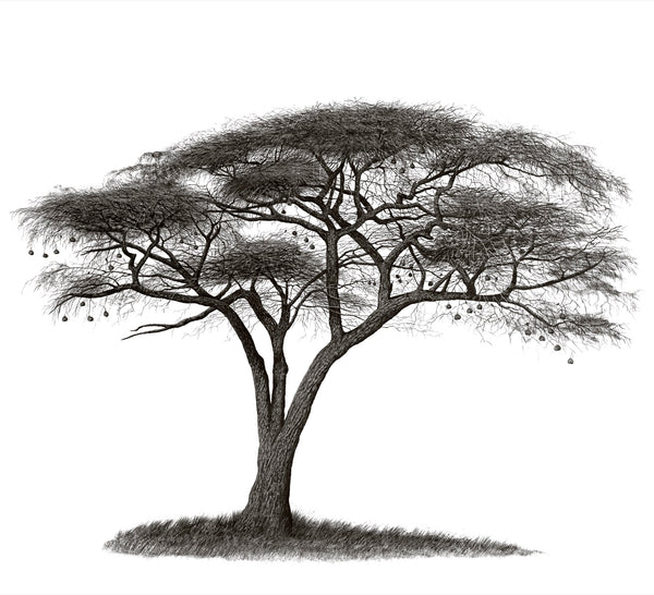 This is an Open Edition Fine Art Print of the original charcoal drawing and part of the Trees of Africa Collection.